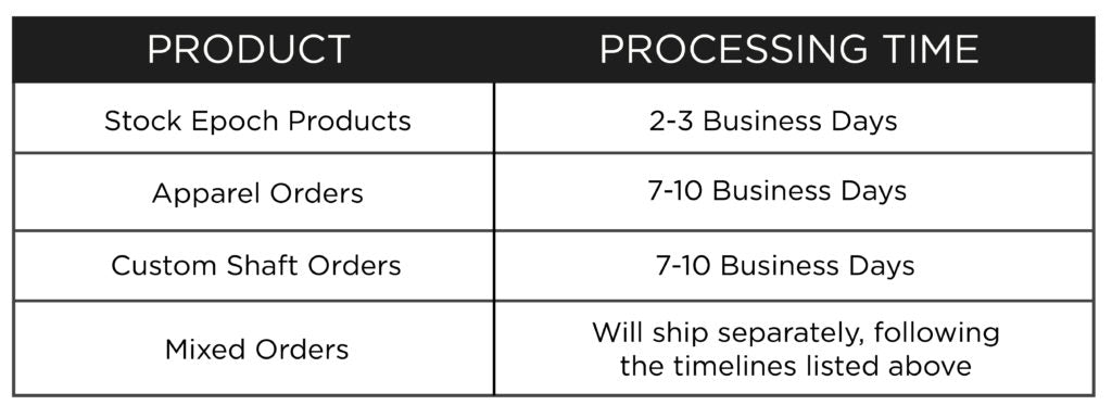 Stock Epoch products take 2-3 business days to be delivered once shipped.